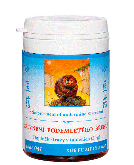 Popis dle TCM - Jedná se o modifikaci originální tradiční čínské bylinné směsi XUE FU ZHU YU WAN, která je upravena na dnešní poměry. Tato bylinná směs má 2 základní účinky -rozpuštění blokády krve YU XUE v horním ohništi (od bránice výše) a rozproudění stagnace jaterní energie čchi GAN QI ZHI. V praxi si tento stav můžeme představit jako „ucpaný okap či podvázání v pase“. Jedná se o nejsilněji působící bylinnou směs na blokádu krve YU XUE a stagnaci energie čchi QI ZHI. Však také nemoci a příznaky, které se odvíjejí od této čínské patologie, tomu patřičně a v dostatečné míře odpovídají - silné, ostré, fixní a chronické bolesti od pasu nahoru - bolesti v podžebří, na hrudi, na hlavě, neuralgie trojklanného nervu, bolesti mezižeberních nervů, bolesti kloubů, bolesti hrudní a krční páteře, suchá a olupující se kůže, tmavé váčky pod očima, potemnělý obličej, tmavé či nafialovělé rty nebo nehty tmavý vzhled obličeje, červené pavoukovité névy na tváři, nose, trupu, vnitřní straně kolenou a kolem kotníků, bolestivé a zánětlivé dásně s uvolňováním zubů, pískání v uších, časté změny nálad, vypadávání vlasů a ochlupení apod. Toto vše je způsobeno blokádou krve YU XUE, jež časem vede i ke stagnaci jaterní energie čchi GAN QI ZHI. Ta se pak projevuje rovněž dalšími bolestmi (opět od pasu nahoru), které tzv. cestují (na rozdíl od fixních bolestí z blokády krve). Díky stagnaci energie čchi a blokádě krve dochází časem k přeměně každé blokády na vnitřní horko či oheň NEI HUO. Tato kombinace blokády YU, stagnace ZHI a ohně HUO napadá dráhu srdce XIN a může se projevit kupř. jako deprese, podrážděnost, výrazné střídání nálad, bušení srdce, nespavost, neklidný spánek, pocit horka na hrudi, odpolední zvýšené teploty apod. V oblasti žaludku WEI se pak může objevit (v důsledku blokády krve YU XUE, která utiskuje žaludeční čchi WEI QI ZHI a má za následek vzestup „vzbouřené žaludeční čchi v protisměru“ WEI QI NI) neustávající škytavka, pocit na zvracení či zakuckávání se při pití tekutin apod.